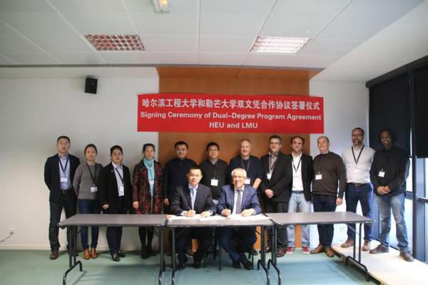 会议期间,勒芒大学校长 Rachid EI Guerjouma教授与哈尔滨工程大学水声工程学院院长殷敬伟教授就两校双文凭教育签署了国际合作框架协议下的合作方式及约定。旨在两校共同的专业领域,建立、简化和强化双方的科学和教育交流以及发展的合作。合约双方在教学领域以及学生及教职人员的交换面努力开展合作。哈尔滨工程大学还与勒芒工程师学校校长Jean-François Dassin先生举行了第一次磋商,探讨合办中法声与振动工程师学校的计划。